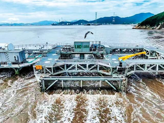 “提琴”其实是LHD海洋潮流能电站的发电机组,由杭州林东新能源科技股份有限公司(以下简称“林东新能源”)研发建设。它是全国首台兆瓦级潮流能发电机组,单机容量居全球首位。截至今年7月底,该电站已连续运行超98个月,稳定运行时间打破世界纪录,总并网电量超861万千瓦时。
